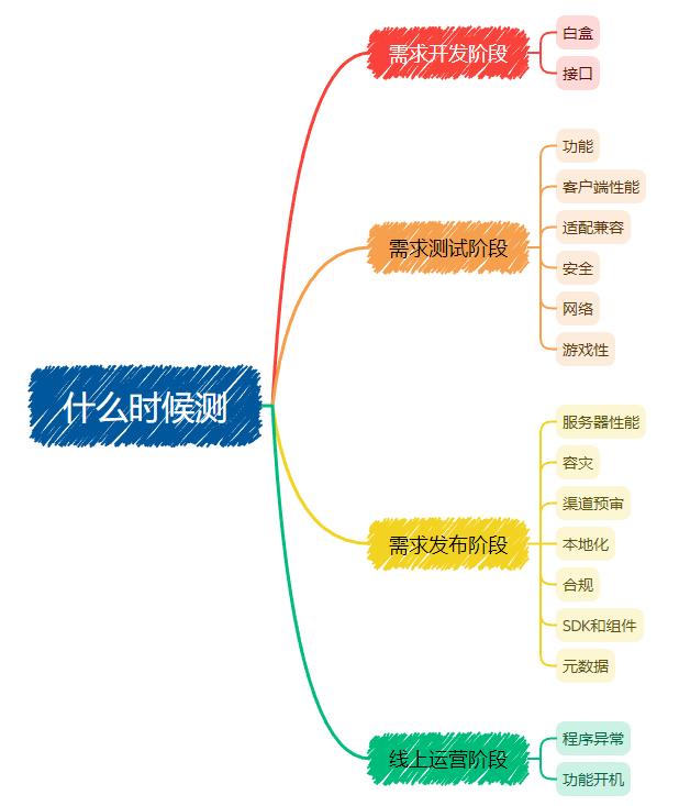 按照版本开发的不同阶段,可以划分为四个阶段,在不同阶段,开展测试的必要性和可执行性,决定该阶段的重点测试内容。需要和项目沟通重点测试内容的进测条件(开发进度、测试环境、配套工具、数据等),确认具体的准备时间和执行时间,根据时间确认测试内容覆盖的深度和广度。